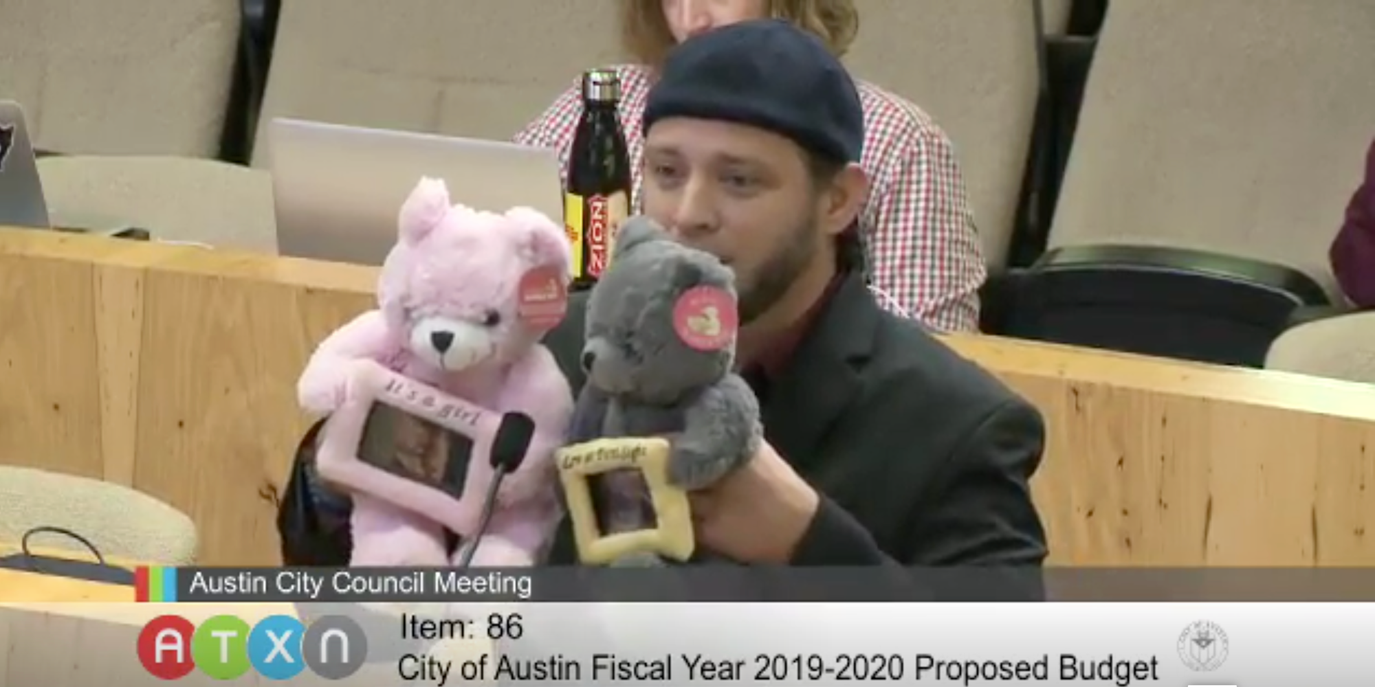 In 2012, he began protesting outside a clinic in Shreveport, Louisiana. Sometimes he held a white plastic bullhorn and a sign that read “We will adopt your baby” on one side and “Babies are murdered here” on the other. Sometimes he could convince an “abortion-minded” woman from the clinic in Louisiana or one of the clinics he frequented in Texas to come with him to a 4D ultrasound facility where he asked the technician to record the sound of the fetal heart tones and implant it into two teddy bears: one for the woman; one for him.
